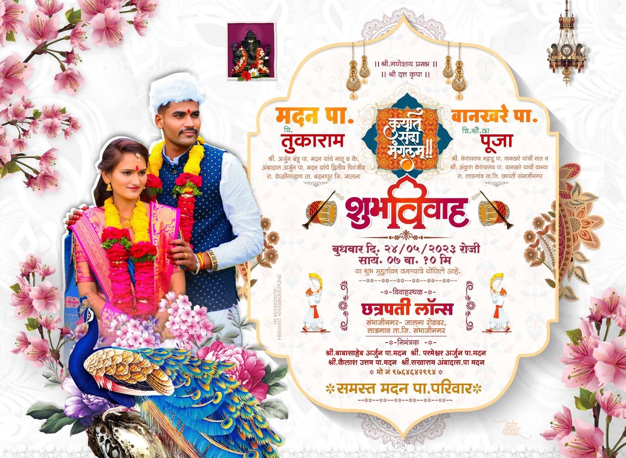 • Traditional Marathi Layout with Floral & Peacock Theme